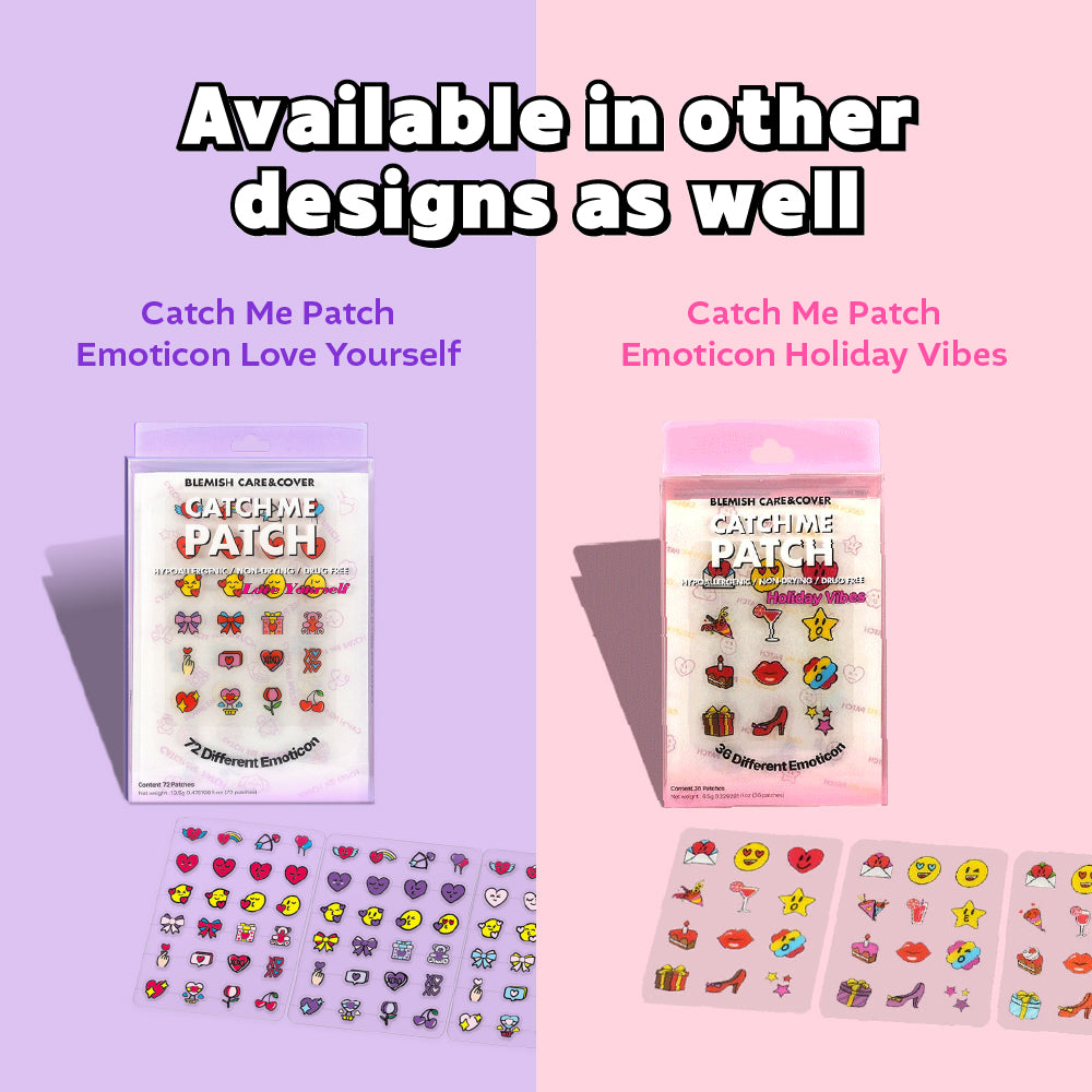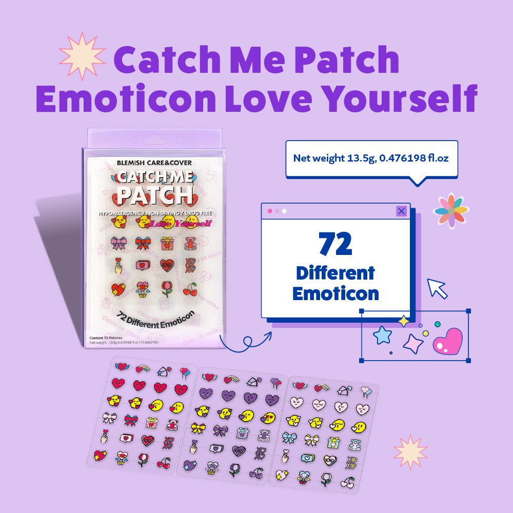 CATCH ME PATCH Emoticon Love Yourself – Hydrocolloid Spot Cover Patches with Cute Emoticon Designs, Waterproof & Ultra-Thin, 72 Count
