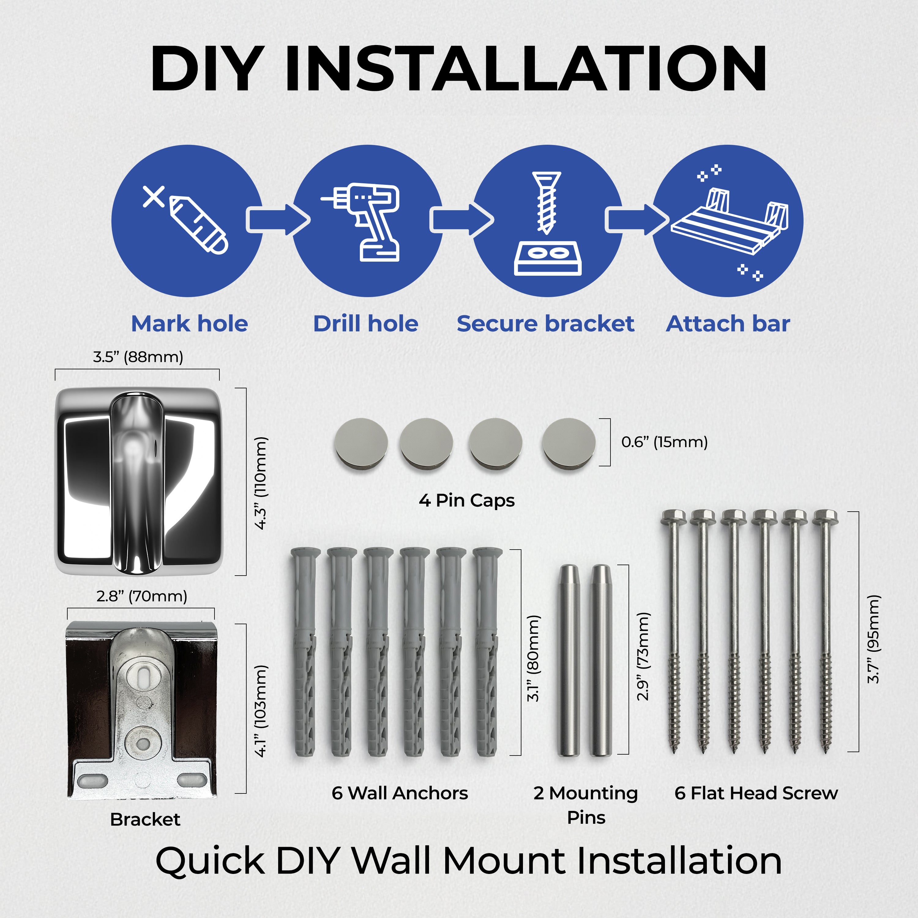 2. Keep level and pencil out 400–500 mm above the floor, remove the fixture plate and drill 5 holes 60 mm deep with an 8 mm diameter drill into the marked position. Insert the expansion tube into the hole.