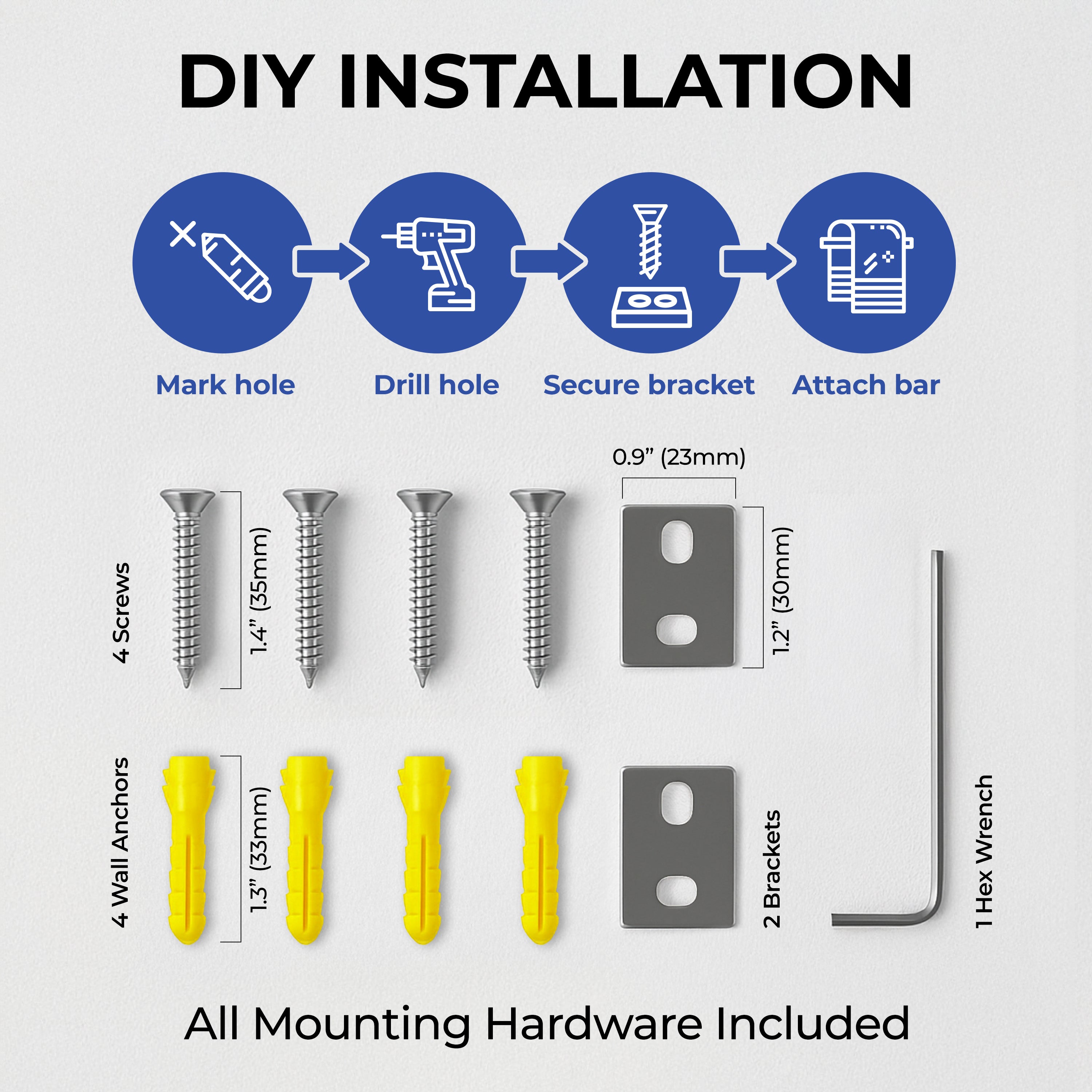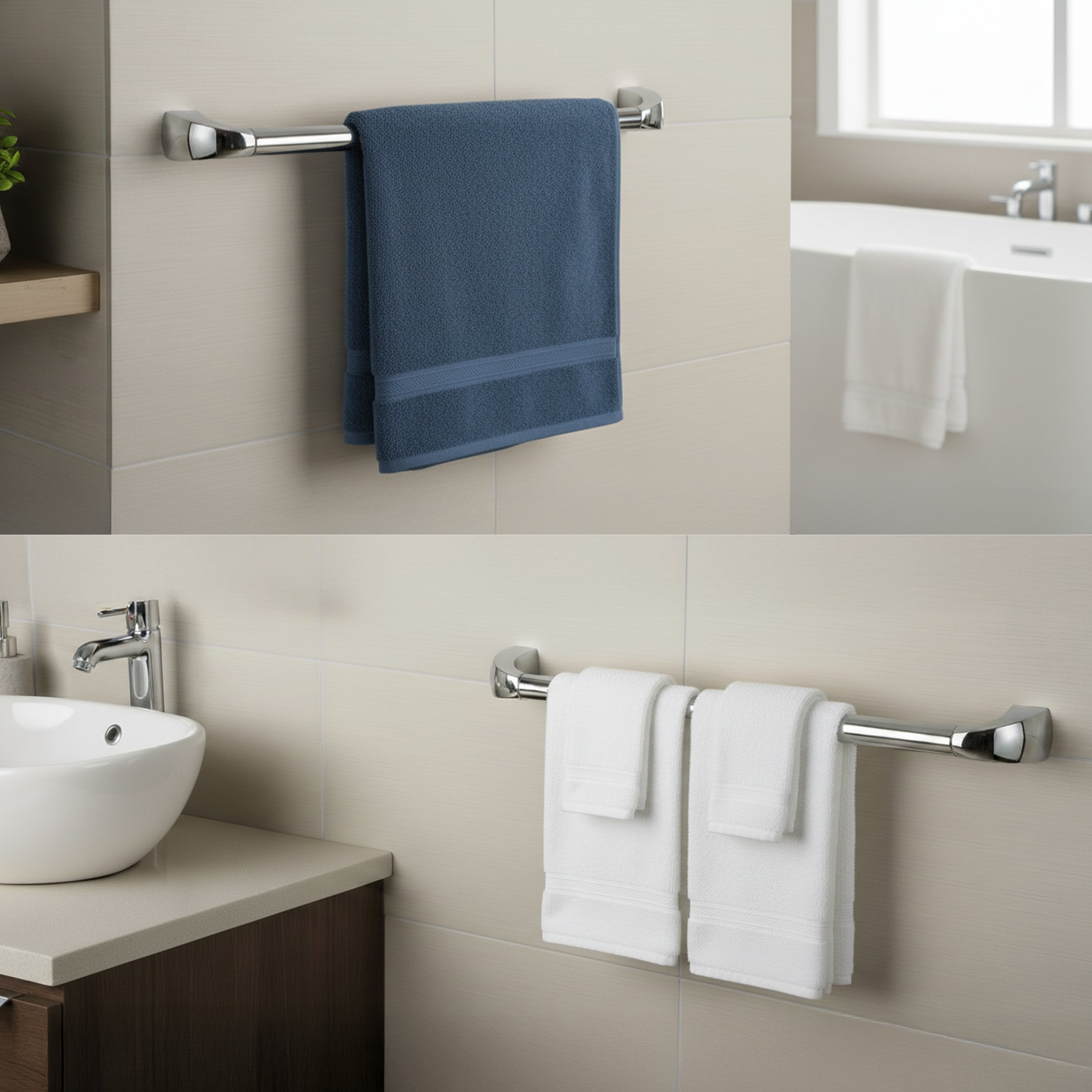 Bathroom Towel Bar – 20" Chrome-Finished Stainless Steel Wall Mount Rack with Mounting Kit – Rust-Resistant, Modern Design for Bathroom, Toilet, or Sink Area