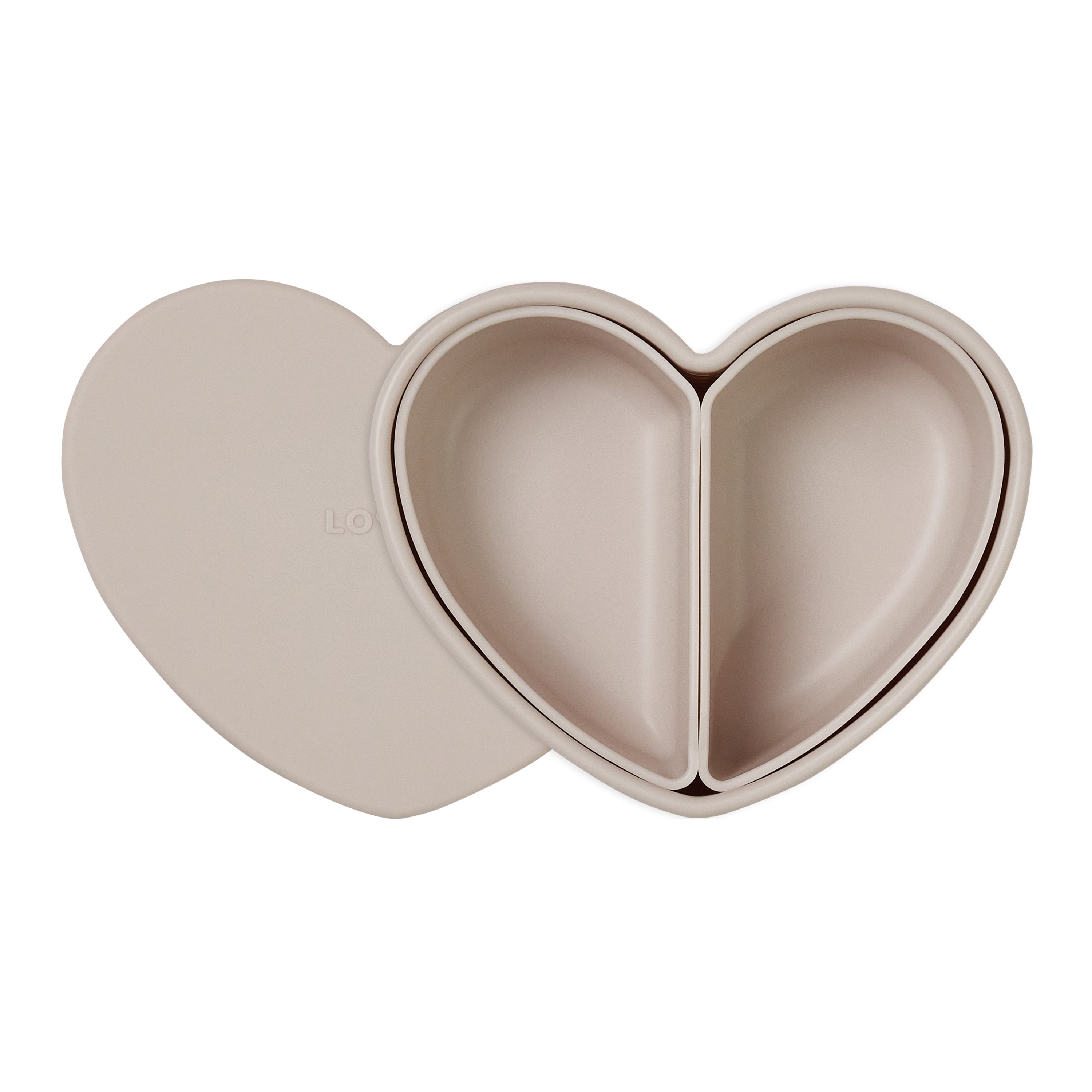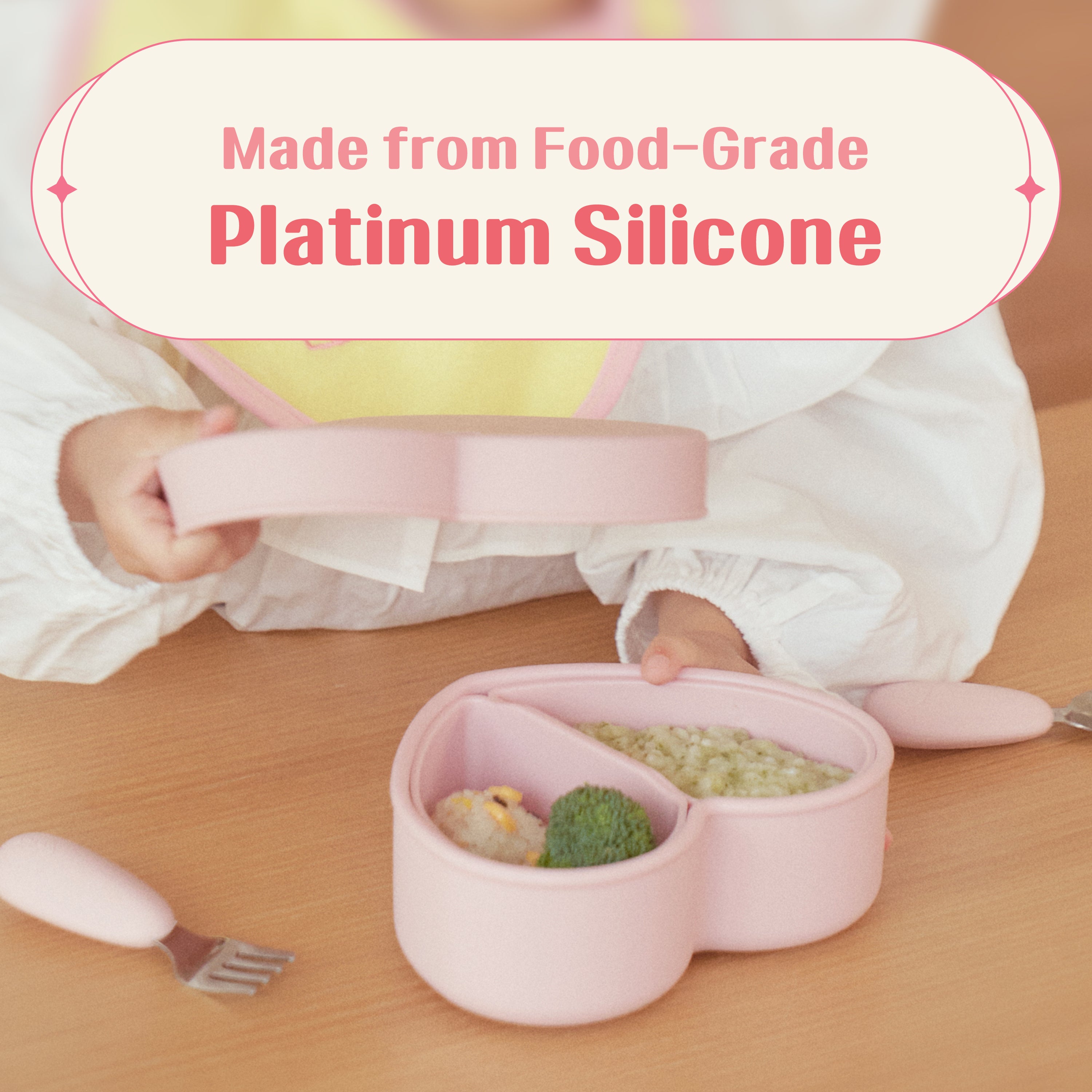 LOVEAT Heart Baby Lunch Box 15.2 fl oz (450 ml) – Silicone Suction Divided Plate for Toddlers and Kids, BPA Free Feeding Dish with Lid, Microwave and Dishwasher Safe-3colors