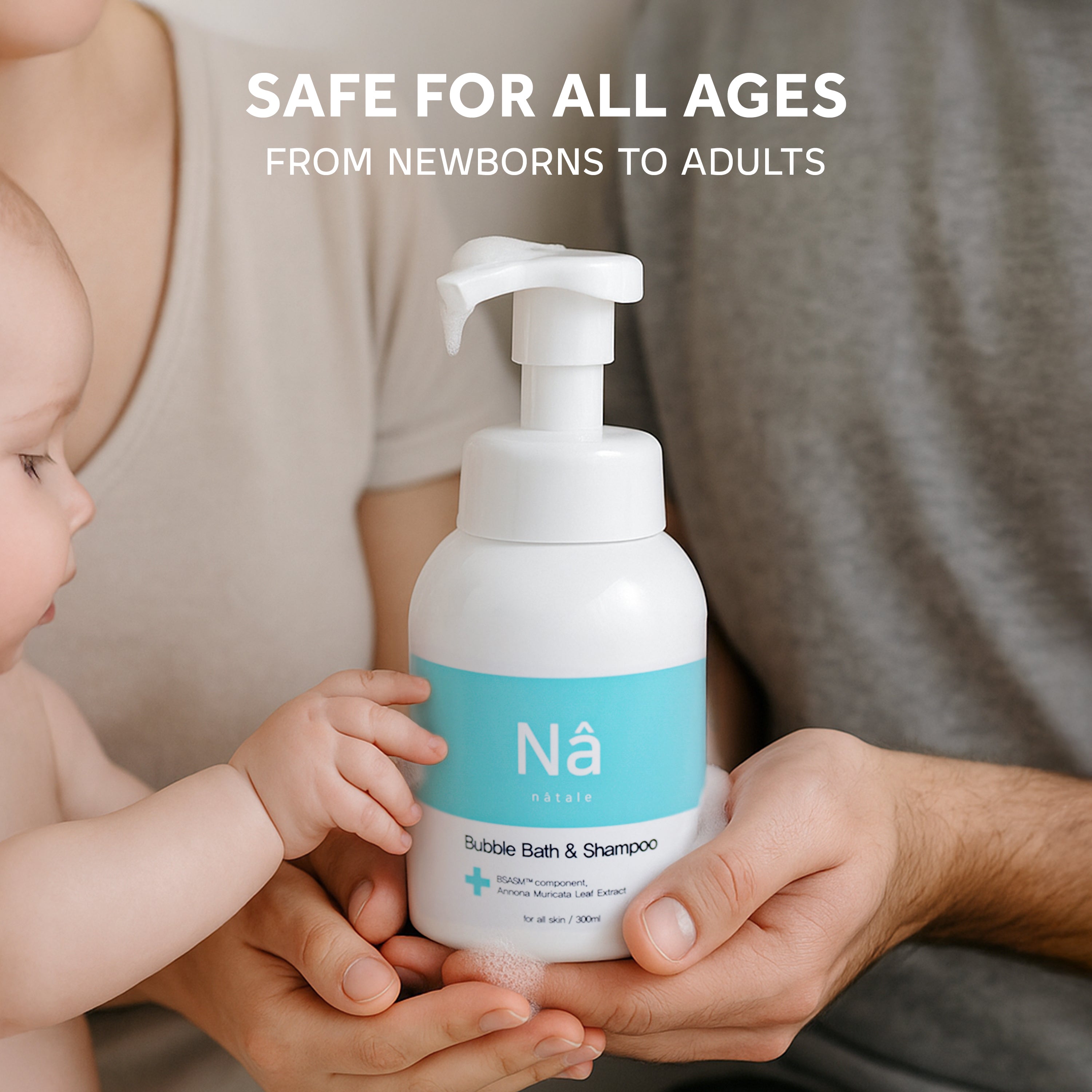 • Natale Bubble Bath & Shampoo is a safe, mild cleanser the whole family can use — from newborns to adults.