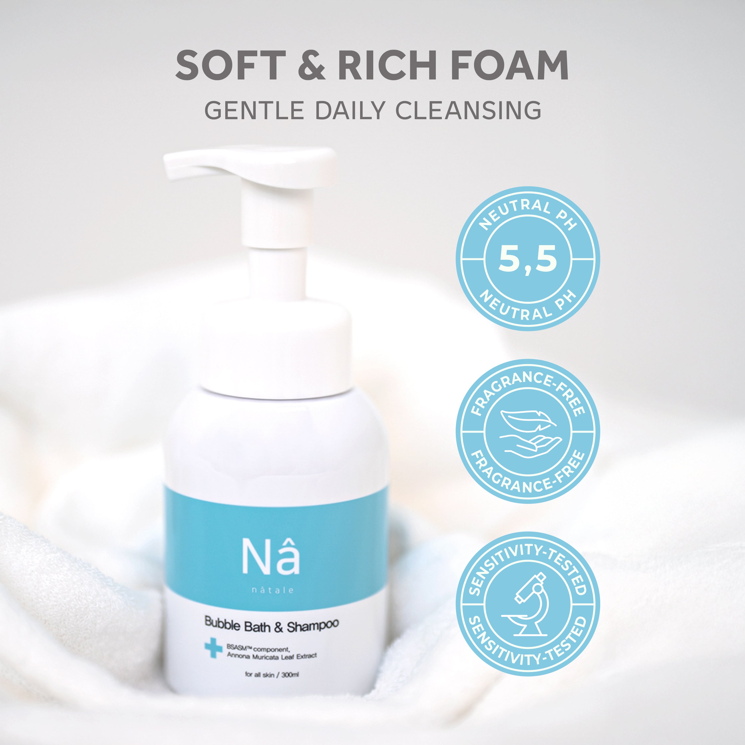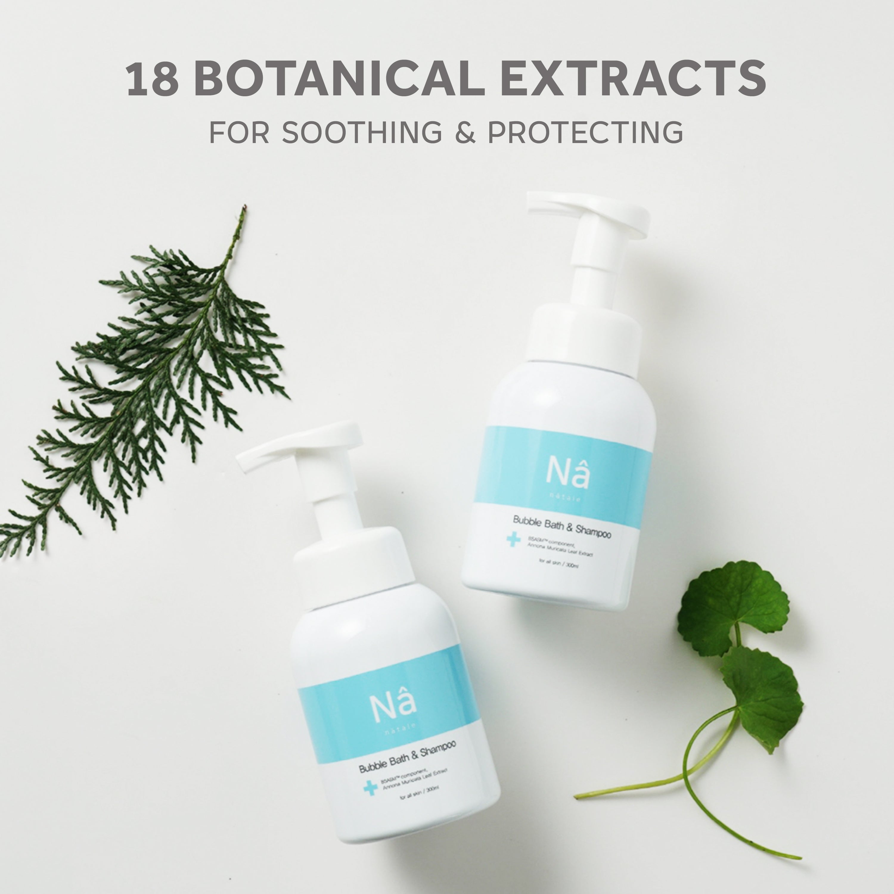 A gentle pH 5.5 bubble bath & shampoo suitable for the whole family, enriched with 18 botanical extracts and ceramide for soothing, moisturizing, and protecting sensitive skin.