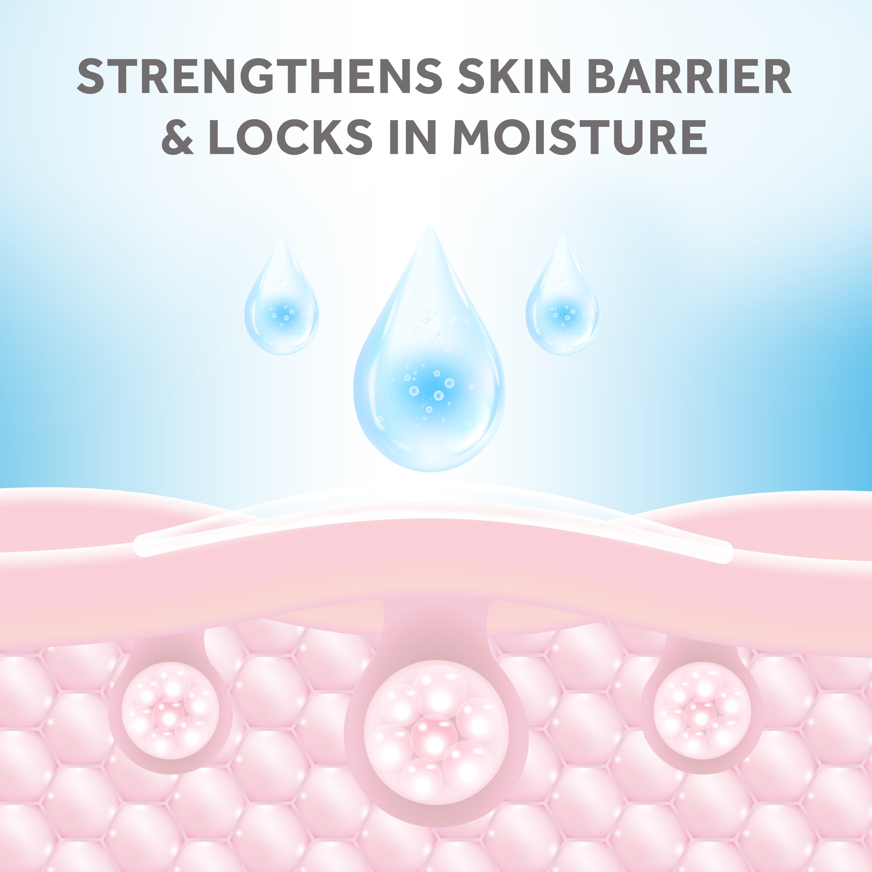 Infused with hyaluronic acid, panthenol, and Ceramide NP to restore moisture and strengthen the skin barrier.