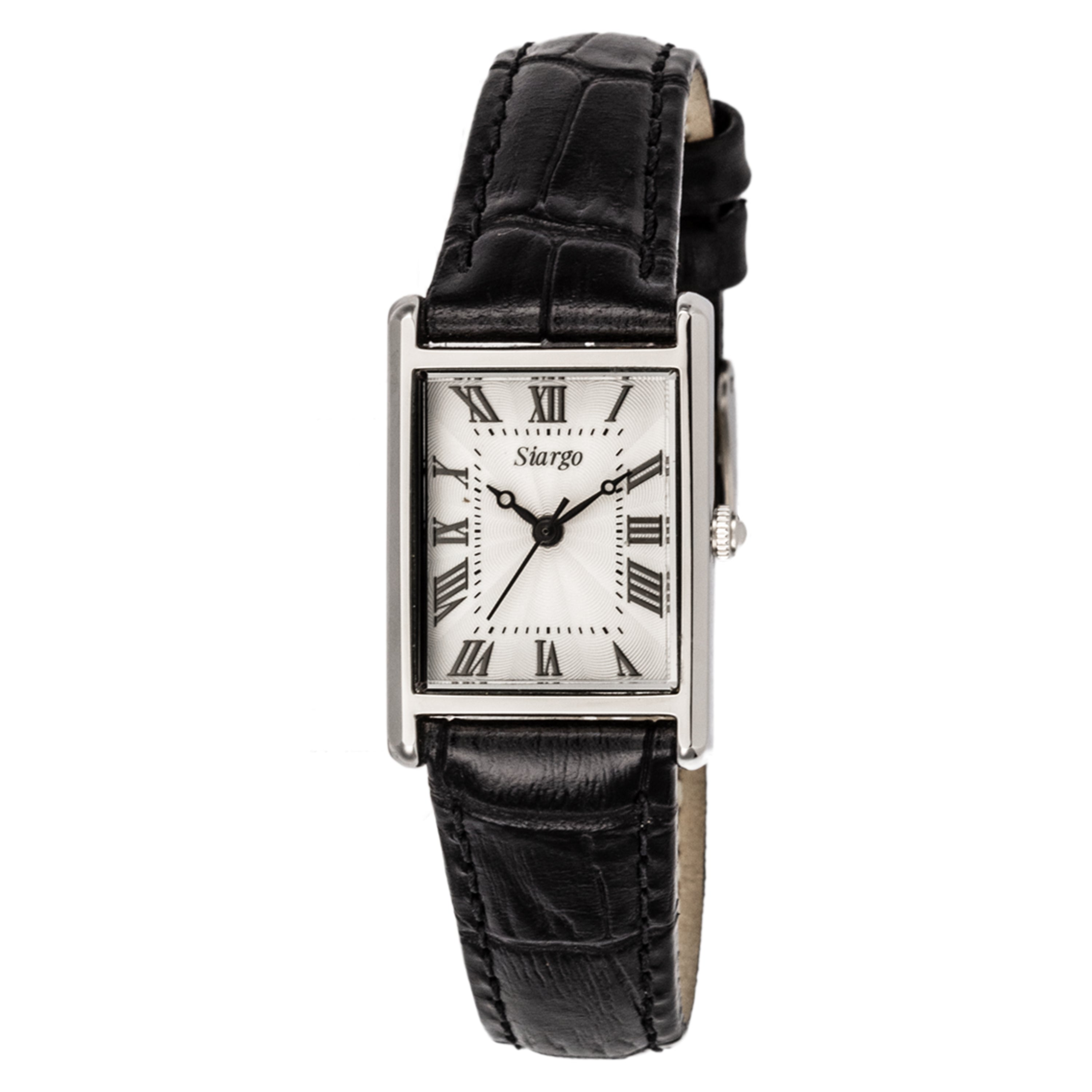 SIARGO Fennel 19mm Petite Watch with Guilloché Brass Case, Sapphire Glass, Cowhide Leather Strap, and Swiss Ronda Quartz Movement (Silver & Casual Black)
