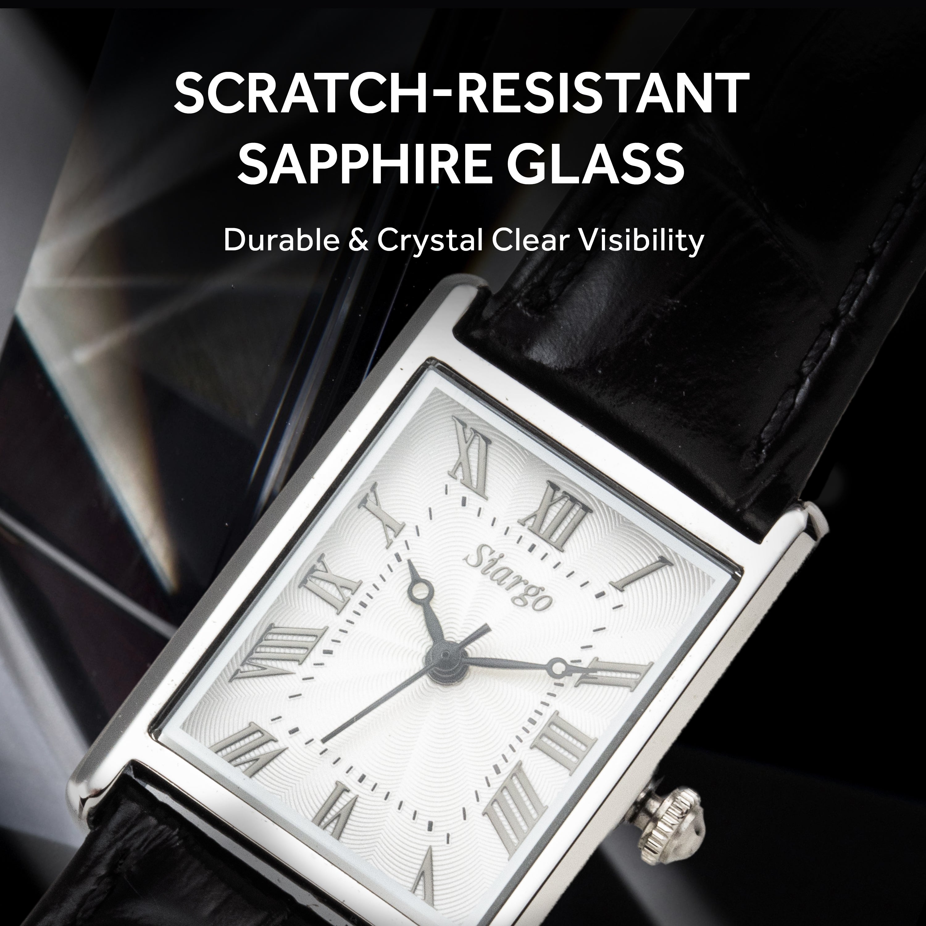 • The watch face is protected by a scratch-resistant sapphire glass, often referred to as the ""king of watch glass,"" ensuring clarity and durability for daily wear.